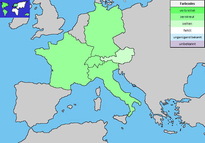 ArealHeimat: Südamerika vom Bundestaat Minas Gerais in Brasilien bis südlich der Mündung des Rio de la Plata in ArgentinienIn Europa, Australien, Mittel- und Nordamerika eingeschlepptSchweizzerstreut (0,5%)aber selten, teilweise eingebürgertDetails vgl. info flora (1.7.2022)DeutschlandzerstreutseltenÖsterreichseltenlokal eingeschleppt, z.B. Thermalwässer im Warmbad VillachItalienzerstreutvor allem in NorditalienDetails vgl. Flora Italiana (1.7.2022)Frankreichzerstreuteingebürgert und in starker AusbreitungDetails vgl. Tela Botanica (1.7.2022)