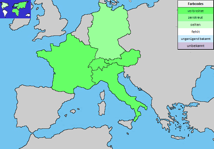 Arealrund um das Mittelmeer und zerstreut in VorderasienEuropaAsien (Klein- und Vorderasien)Afrika (Nordwesten)Amerika (verschleppt)Schweizverbreitet (32%)aber zerstreutDetails vgl. info flora (8.9.2022)DeutschlandzerstreutDie Bestände gehen zurück.Österreichverbreitetin allen Bundesländern ausser Kärtnen, dort ausgestorbenItalienverbreitetaber seltenin den meisten RegionenDetails vgl. Flora Italiana (8.9.2022)Frankreichverbreitetin fast allen DépartementsDetails vgl. Tela Botanica (8.9.2022)