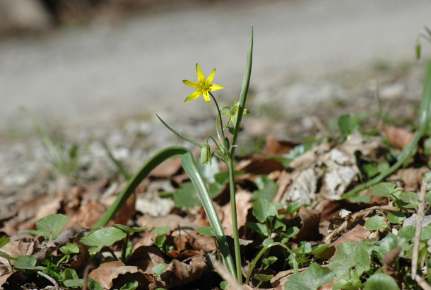 - grundständiges Blatt an blühenden Pflanzen +- flach