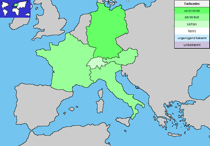 ArealEuropa (mit Schwerpunkt im Osten)SchweizseltenSchaffhausen sowie nördliches Aargau und angrenzendes Zürich, ausserdem im Rheintal nördlich von ChurDetails vgl. info flora (30.11.2022)Deutschlandverbreitetaber zerstreut bis selten vor allem im Norden und OstenÖsterreichzerstreutzerstreut bis selten in der östlichen LandeshälfteItalienzerstreutzerstreut, u.a. in den Regionen südlich der Schweizer GrenzeDetails vgl. Flora Italiana (30.11.2022)Frankreichzerstreutselten, schwergewichtig im SüdenDetails vgl. Tela Botanica (30.11.2022)
