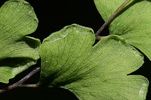 - Der vordere Rand vieler Fiederblättchen ist nach unten umgerollt und bedeckt die Sporangien.