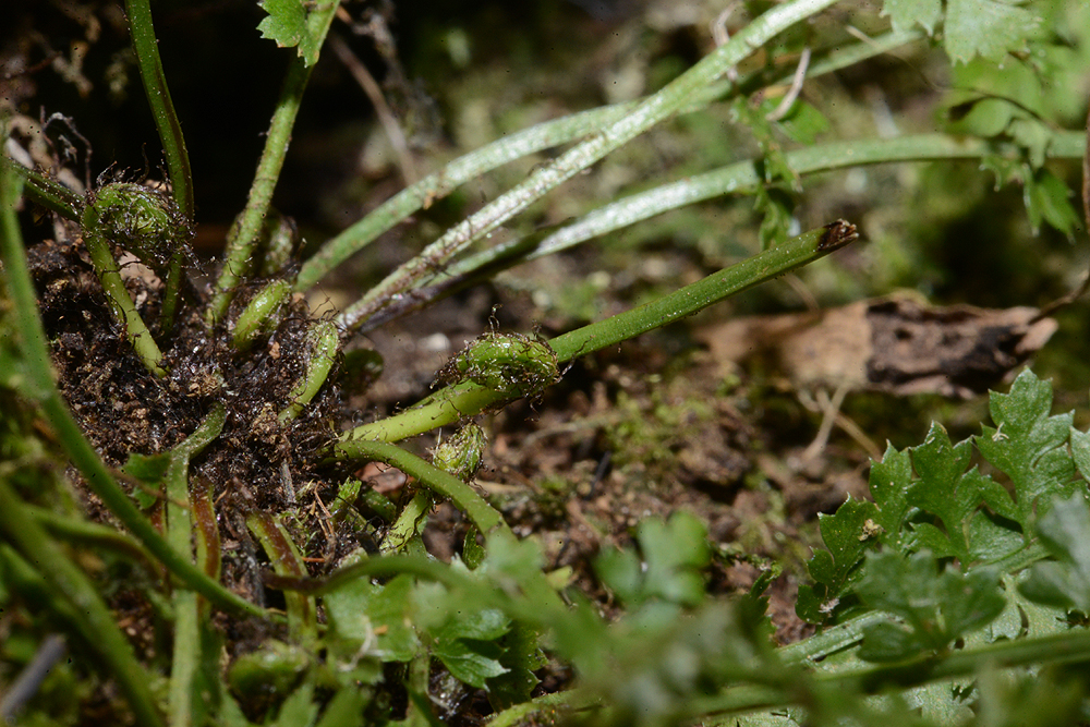an der Basis mit 2 Gefässbündeln, die sich weiter oben zu einem X-förmigen Strang vereinigen