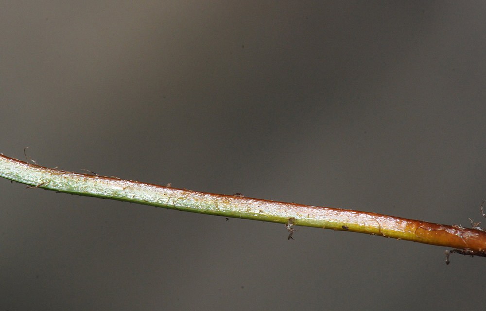 an der Basis mit 2 Gefässbündeln, die weiter oben zu einem X-förmigen Strang zusammenfliessen