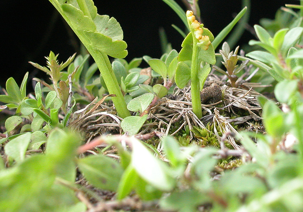 - die Trennung in das sterile und fertile Teilblatt deutet sich schon tief unten an, geschieht jedoch über dem Erdboden