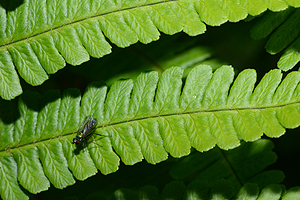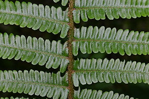 - Fiederspindel der mittleren Fiedern unterseits am Grund mit einem dunklen Fleck