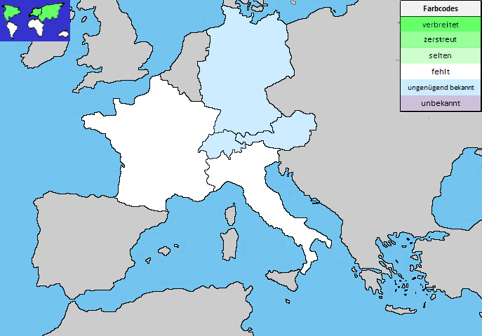 ArealEuropaSibirienNordamerikaSchweizunzureichend bekanntwohl zerstreutDer Holotyp stammt von der Nordseite des Höhronen ob Hütten auf ca. 950 m. - Fraser-Jenkins (2007), S.5.Deutschlandunzureichend bekanntwohl zerstreutÖsterreichunzureichend bekanntItalienwahrscheinlich nicht vorhandenFrankreichwahrscheinlich nicht vorhanden |