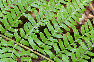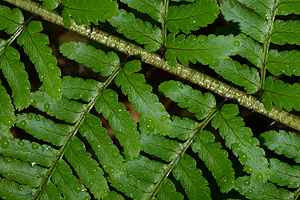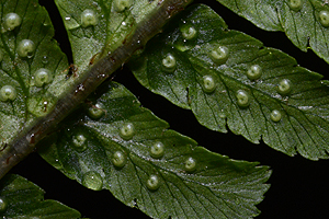 - sowohl auf der Unterseite wie auf der Oberseite nahe der Blattspindel mit einem kräftigen, 2-5 mm langen, dunklen Fleck
