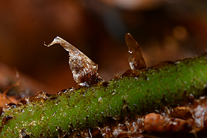 - jung wie ein Donut geformt, Ränder nach innen unter das Sporangienhäufchen gebogen